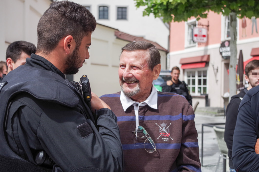 Strüzenberger ist sauer. Die Polizei schreibt eine Anzeige weil er das Kennzeichen seines Fahrzeugs zunächst nicht preisgeben will.