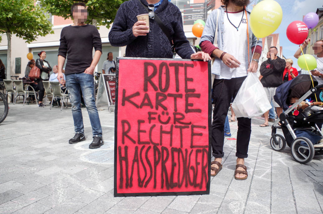 Michael Stürzenberger und die AfD versuchten am Samstag Stimmung gegen den Bau einer Moschee in Kaufbeuren zu machen. Doch zahlreiche Kaufbeurer protestierten gegen den stundenlangen Auftritt der Islamfeinde und zeigten den »rechtsradikalen Hasspredigern« lautstark die »Rote Karte«.
