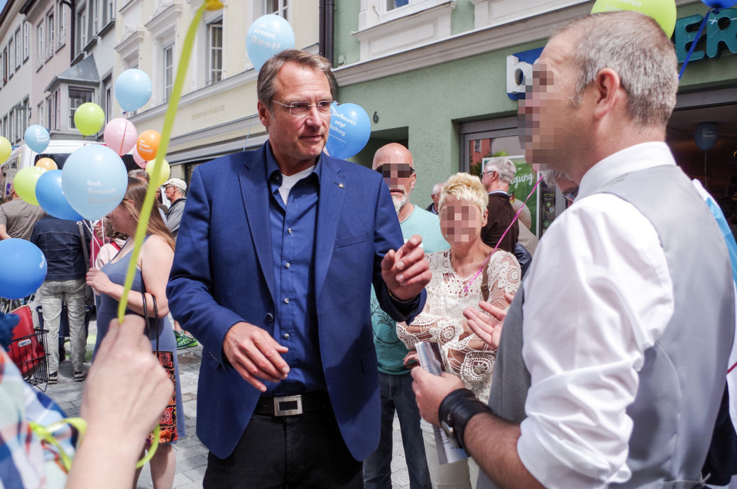 »Terror ist immer islamisch bedingt«, behauptete AfD-Landtagskandidat Wolfgang Rotter als Redner auf Stürzenbergers Kundgebung in Kaufbeuren