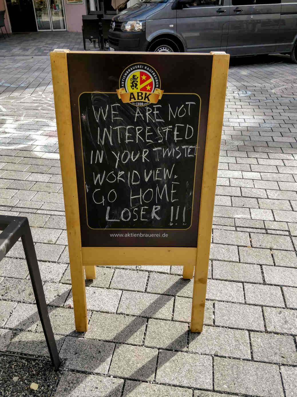 Anti-Islam-Hetzer #Stürzenberger ist gerade in #Kaufbeuren eingetroffen. Irgendwer hat sowas wie einen Bannkreis um seinen Kundgebungsort gezogen und Willkommensgrüße hinterlassen. pic.twitter.com/URVuSmoR2g