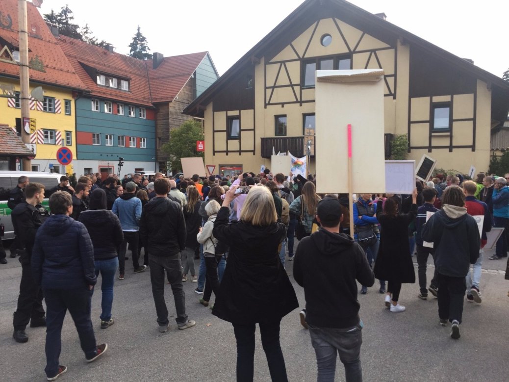 »Da ist wirklich halb Weitnau auf den Beinen«, freute sich der Veranstalter während der Aktion am Samstagabend in der Oberallgäuer Gemeinde. Mindestens 600 Personen demonstrierten am gegen den Auftritt Beatrix von Storch. Unter dem Titel »Bayern. Aber sicher!« sprach die Vize-Chefin der AfD-Fraktion im Bundestag auf Einladung ihres Kemptener Fraktionskollegen Peter Felser im Gasthof Goldener Adler.