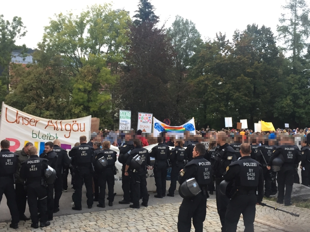 Unter dem Motto »Das Allgäu ist bunt« demonstrieren mehr als 500 Menschen gegen »die Menschenfeinde von der AfD«. Den Auftritt von Beatrix von Storch im Gasthof Goldener Adler verfolgen 170 Personen. Mitarbeiter des eingesetzten Sicherheitsdienstes fielen schon früher bei der AfD mit Nazisymbolen auf.