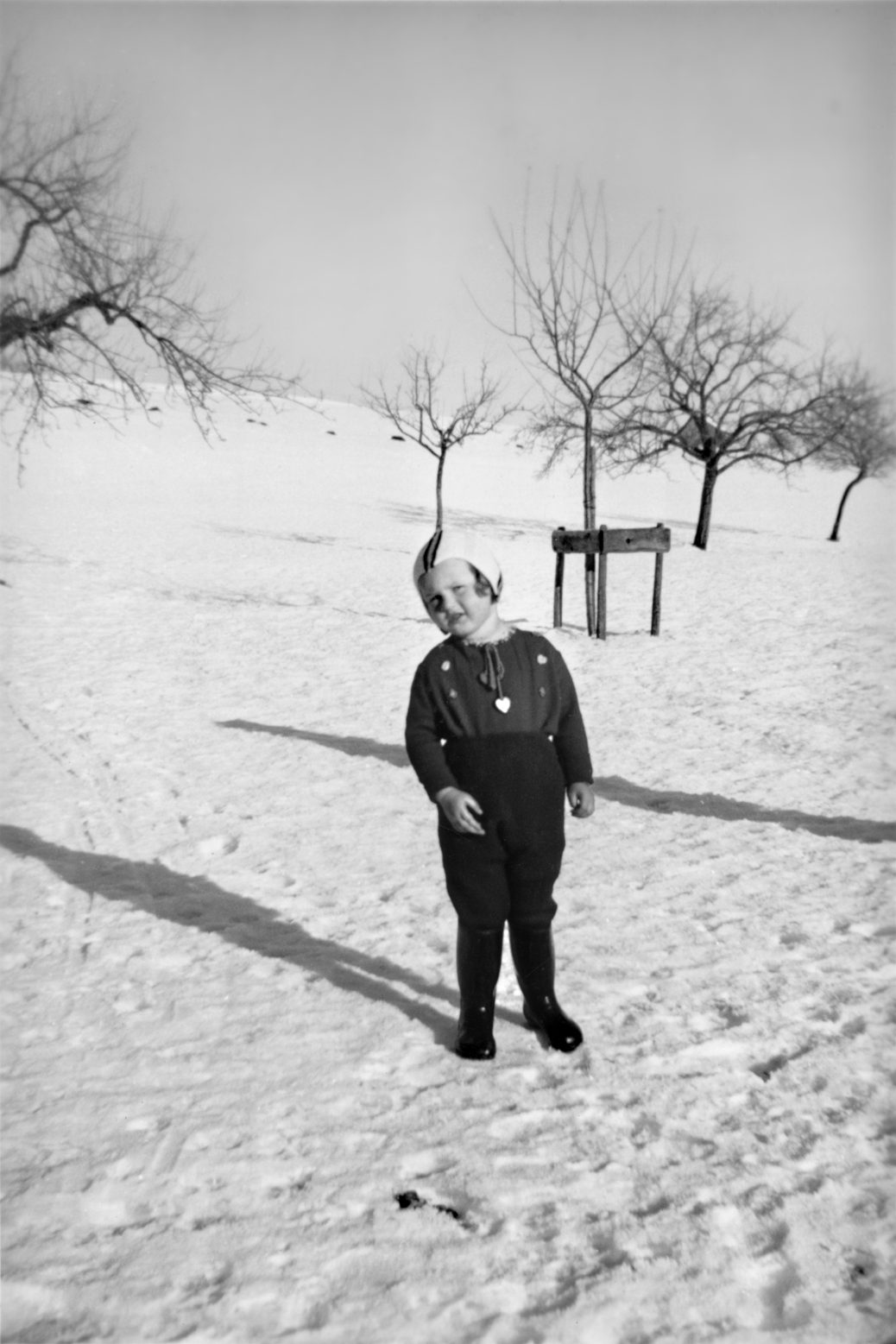 Ihre Kindheitsjahre erlebte Gabi Schwarz in Stiefenhofen auf dem Bauernhof der Aicheles. Dorthin hatte Lotte Eckart, geb. Schwarz, ihr Kind wenige Wochen nach der Geburt in Marktoberdorf im Juni 1937 bei den Pflegeeltern Josef und Therese Aichele in vermeintliche Sicherheit gebracht. Zusammen mit Pflege-Geschwistern, zwischen Heuernte und Gemüsegarten, im Spiel mit Nachbarskindern, Freundin Elisabeth, Hund »Frischle«, Hühnern und Katzen erlebte Gabi eine unbeschwerte Kindheit – so zeigen es die Fotos der Ausstellung. Gabi‘s Mutter Lotte Eckart hatte den Pflegeeltern eine Kamera gegeben mit dem Wunsch, Gabi zu fotografieren.