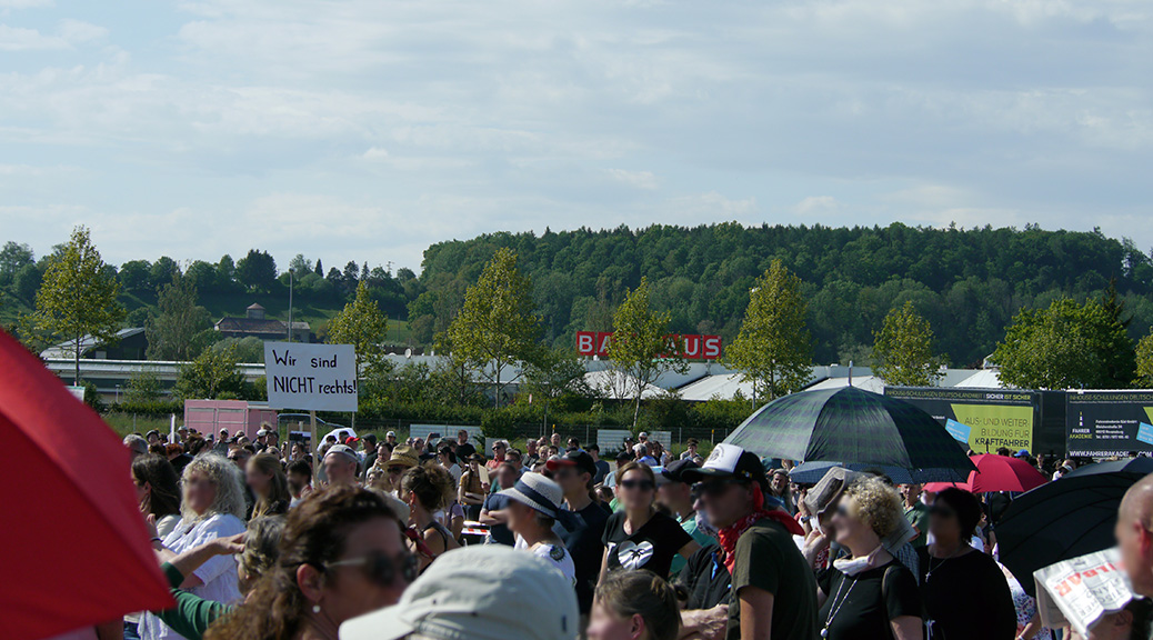 Doch auch die Alternativen scheuen eine eindeutige Positionierung. Antifaschist_innen hatten im Vorfeld zugesagt bekommen, einen Redebeitrag zur Abgrenzung von Rechten und Verschwörungsgläubigen halten zu dürfen. Das wurde zurückgezogen. Man wolle nicht »die Polarisierung anheizen«, hieß es. Deshalb entschieden sich die Kritiker_innen für eine kritische Intervention mit ihren Forderungen am Rande der Alternativ-Veranstaltung. Teilnehmende diskutieren mit ihnen, ob eine klare Abgrenzung gegen Rechts überhaupt notwendig sei.